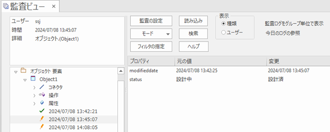 管理者は、監査ビューやシステム出力サブウィンドウで、監査したログの内容を表示できます。監査ビューには、表示内容を変更するためのオプションが用意されており、変更内容を参照するための便利なツリー形式のビューも利用できます。