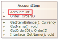 | 1 | コピー先の要素が含まれるダイアグラムを開きます。(下の画像の例では、Customerクラスがコピー元のクラスであり、AccountItemクラスがコピー先のクラスです。) |