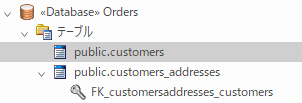 データベースビルダーのツリーでは、テーブル 'customers.addresses' の下に同じ外部キーが表示されます。