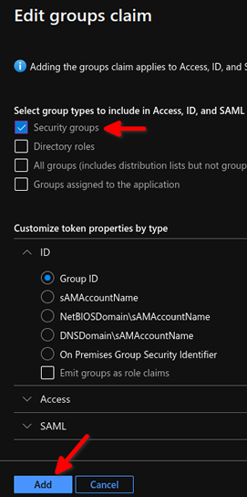 UPNや名前のクレームを追加した方法と同様に、IDトークンにグループのクレームを追加します。