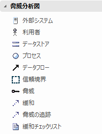 ツールボックスの脅威分析図グループには、脅威分析に関連する要素が含まれています。